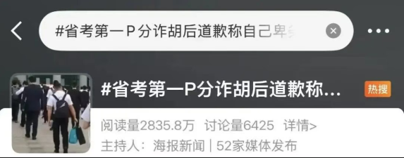 近日,“省考第一P分诈胡”联系话题冲上热搜第一,激励温雅。据媒体报谈,昨年12月,2026届硕士生李明(假名)报考了广东省公事员检修中的一个法官助理岗亭,该岗亭仅招录一东谈主。笔试得益公布后,又名自称该岗亭笔试第一的网友发出了我方的“得益单”,79.7分。李明的笔试得益是65.25分,他一忽儿堕入颓废。