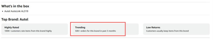 旗下电动充电桩、代码读取器、轮胎压力传感器等多款居品王人冲进了BSR榜单,6686尤其在代码读取器与扫描器用类目里,Autel一家就占了6个席位。