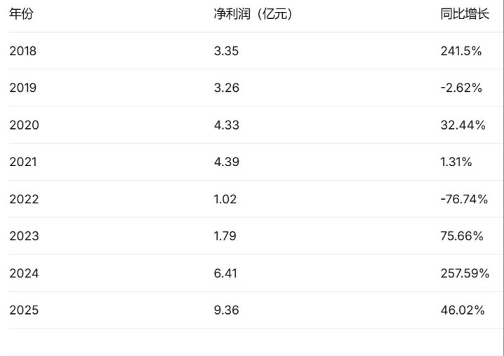但若细究积年数据,不错发现一条显明的增长弧线变化:早在2021年,利润增长已显疲态,2022年更是出现负增长。而2023年起,净利润瞬息爆发,澳门在线(赌钱)娱乐网采集三年保持高增长势头,2023-2025年所有这个词揽下17.56亿元,占八年利润总和的一半以上(53.15%)。这一行折背后,原因安在?