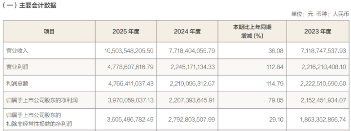 3月30日晚间,廉明证券发布《2025年年度讲解》披露,讲解期内,公司扫尾营业收入105.04亿元,同比增长36.08%;包摄于上市公司鼓励的净利润(下称“净利润”)39.70亿元,同比增长79.85%;包摄于上市公司鼓励的扫数者权柄507.93亿元,同比增长5.42%。