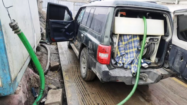 “江岸区岱山三桥隔邻有东说念主私售散装柴油,现场气息刺鼻!”1月下旬,江岸差异局顺序大队、百步亭派出所接到大众举报后,立即树立专班伸开核查。1月24日,民警抓获罪人运输柴油的犯法行径东说念主王某。据王某嘱咐,其为裁汰本人客运公司运营资本,暗里改装面包车,每周从黄陂一“黑加油点”廉价购买柴油,罪人为我方名下5辆客运车辆加油。