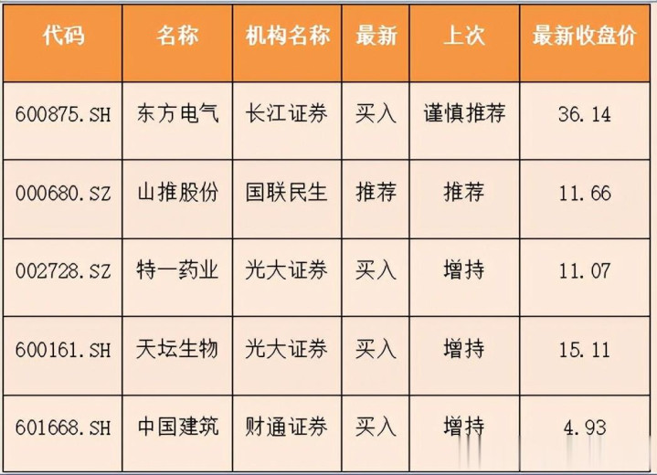 近5日有7家公司获取券商调高评级,包括东方电气、山推股份、特一药业、天坛生物、中国建筑等。
