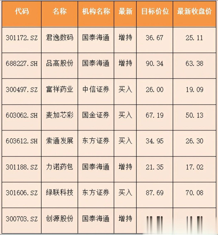 最新机构初度热心股票方面,近5日共有45份研报对上市公司进行初度遮掩,君逸数码、品高股份、富祥药业、麦加芯彩、索通发展等获取明确的目的价钱。