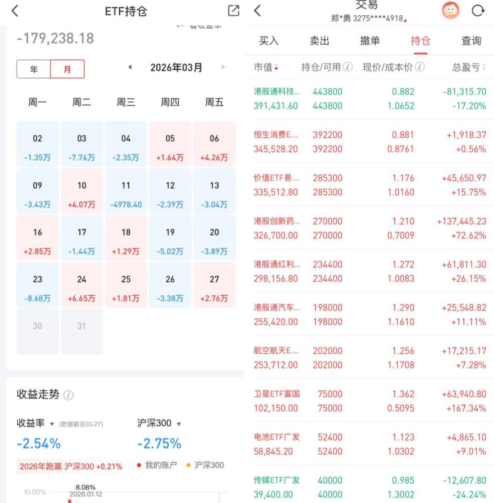 捏仓港股ETF与军工ETF本周大多是下降的,好在这周港股跌幅小于A股,账户再次跑赢沪深300指数。