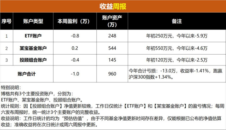 由于本周A股相对港股跌幅较大,博格比拟沪深300指数的逾额收益扩大了。