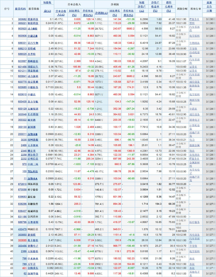 (文后附:2025年年报净利润同比100%以上增幅44只个股详细财务情况表(3月27-30日))