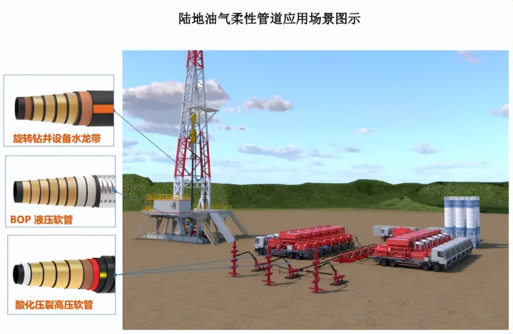 橡胶软管品类繁密,悦龙科技主要从事用于海洋工程、石油开采等领域的高性能软管研发分娩。这类居品是油气开采等功课中介质传输的要津载体,号称系数开采经由的 “人命脐带”。