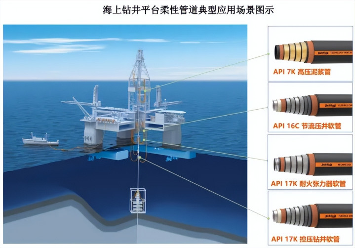 油气开采功课环境的极点恶劣性,对配套软管的性能刻薄了近乎严苛的要求。在海洋油气开采领域,柔性软管需历久耐受高温、高压、海洋盐雾、低温侵蚀及硫化氢腐蚀等复杂工况,必须全面具备耐油、抗气体渗入腐蚀、耐高温、抗冲蚀、防火阻燃及抗老化等优异性能,在复杂入伍条目下长久保持结构踏实、力学性能可靠、密封性能持久,收场超长使用寿命与高脱手安全性;在陆上油气开采领域,尤其是超深层钻探和大型压裂功课中,对橡胶软管的时间尺度、安全踏实性及复杂工况适宜性的要求,与海洋工程比较相似严苛,成为行业内的中枢时间门槛。