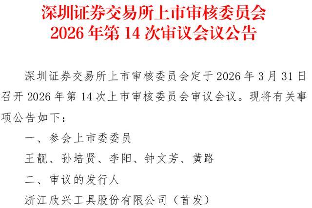 遥望塔财经获悉,2026年3月31日,深交所上市委将召开2026年第14次审议会议,对浙江欣兴用具股份有限公司(下称“欣兴用具”)的IPO苦求进行审议。这是一家深耕孔加工刀具领域逾三十年的“隐形冠军”企业,曾经在2024年主动撤回主板呈报,如今转战创业板再闯关。