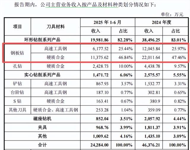 从名义看,这是一家二满三平的企业。但深挖其业务结构,隐患不言而谕——严重的“单品依赖症”。根据最新招股书,讲述期内(2022-2025年),钢板钻产物收入占主营业务收入的比例历久超过70%。遥望塔财经以为,这种高度汇注的产物结构,使得公司犹如站在一个“孤岛”上。当人人钢板钻市集领域仅有9.2亿元时(2024年数据),公司3.4亿元的营收已占据了半壁山河。这意味着,其主业的天花板已近在目前。