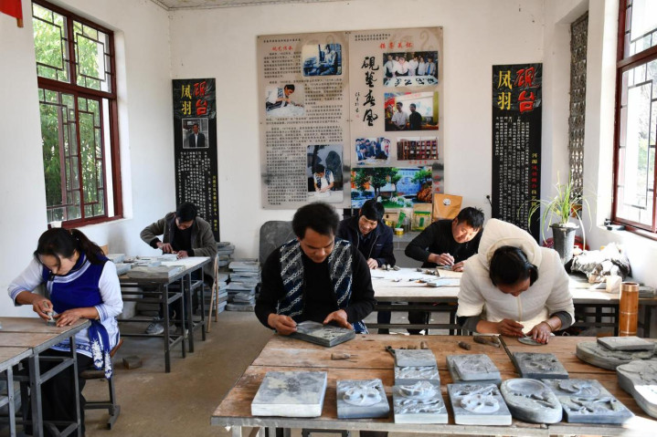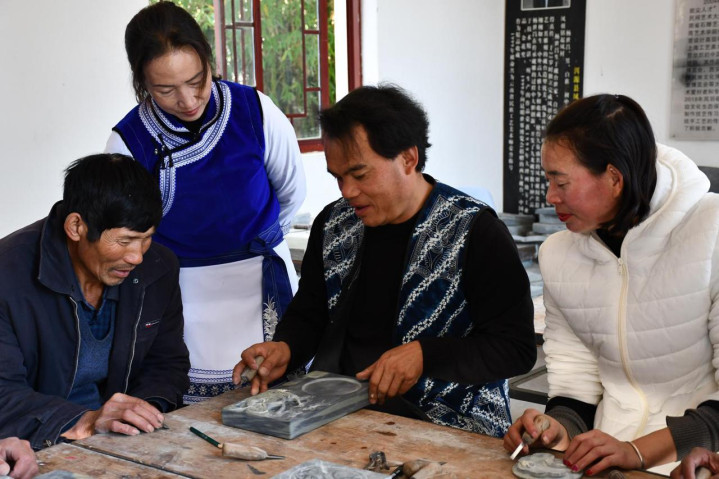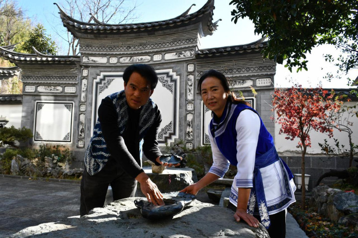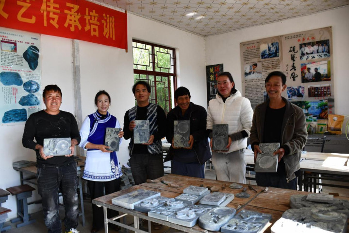 动作“云南省石雕艺术巨匠”,张跃堂长久以传承为己任。2018年,他所负责的凤羽砚台工艺品厂被建树为“大理文化生态保护实际区凤羽砚制作武艺传习所”;2020年,又获批成为该实际区的非遗工坊。他每年组织2至3次砚台武艺培训,积极鞭策传统手工艺的传承与振兴。同期,提供砚台加工、体验、研习不异,累计理睬各种研学团队及搭客千余东谈主次。