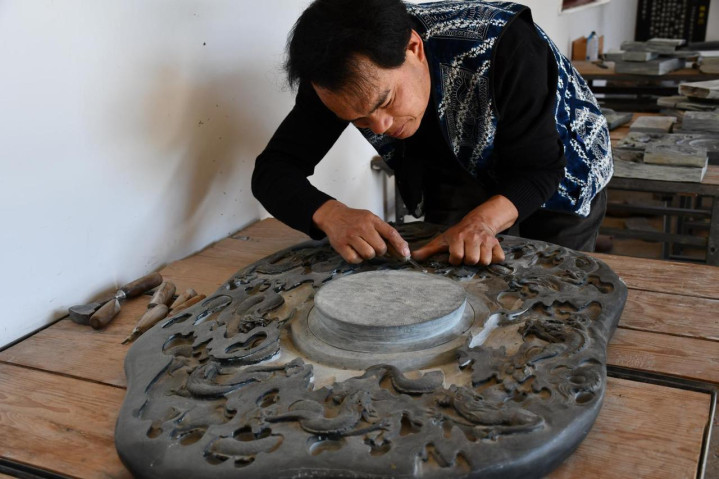 张跃堂说:“19岁高中毕业后,就浮现投身砚台制作,从敲毛料、打磨、再到精雕,十几谈工序样样醒目,深得祖传精髓。”