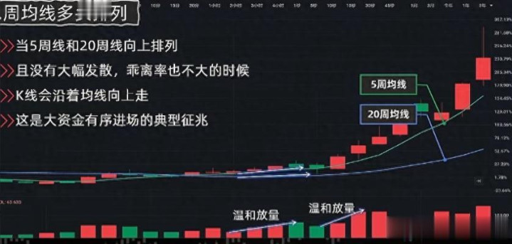 5周线金叉仅仅前奏,20周线才是行情确凿启动的要津。当5周线与20周线朝上成列、乖离率小且未大幅发散,K线沿均线慢步上行,就是大资金有序进场的征兆。