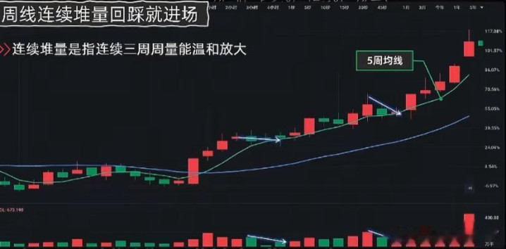 只须堆量趋势不变,股价不破5周均线,就可斗胆进场,周线堆量的真实性远非日线可比,主力假算作在此无所遁形。
