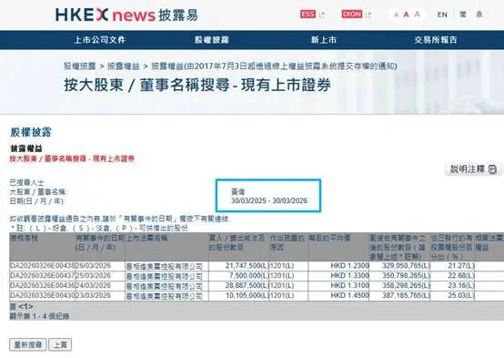 香港联交所最新贵府走漏,喜再见集团(02473.HK)CEO黄伟在上周臆测4天减抓: