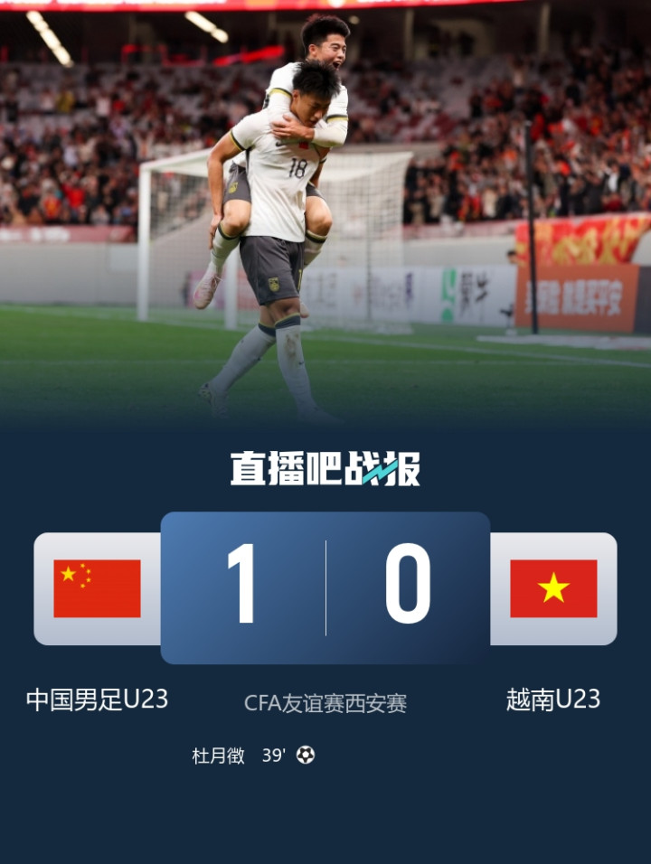 直播吧3月31日讯 北京时代3月31日19:35,西安外洋后生足球锦标赛国足U23迎战越南U23的比赛在西安外洋足球中心进行,U23国足前两场对阵泰国和朝鲜均得益平局,上半场毛伟杰远射造险,杜月徵精彩凌空寰球波首开记载,半场界限,赌钱娱乐平台U23国足1-0越南U23。下半场刘骐玮献精彩扑救,两边均无成立,最终U23国足1-0越南U23得益首胜第2收官。