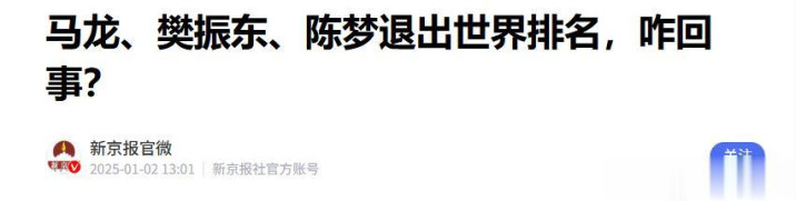 新京报(马龙、樊振东、陈梦退出宇宙名次,咋回事? 2025.01.02)