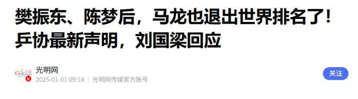 光明网(樊振东、陈梦后,马龙也退出宇宙名次了!乒协最新声明,刘国梁文书 2025.01.01)