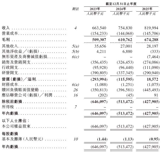 招股书透露,在往时的2023年、2024年和2025年,群核科技的营业收入差别东谈主民币6.64亿、7.55亿和8.20亿元,相应的净亏空差别为东谈主民币6.46亿、5.13亿和4.28亿元,相应的经调遣净利润差别为东谈主民币-2.42亿、-7,004.9万和5,712.7万元。