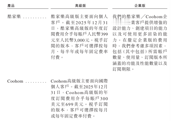群核科技的收入来自企业及个东谈主客户订阅软件产物及惩办决策、向企业客户提供专科做事(模子做事、时代成就做事及客户培训)。