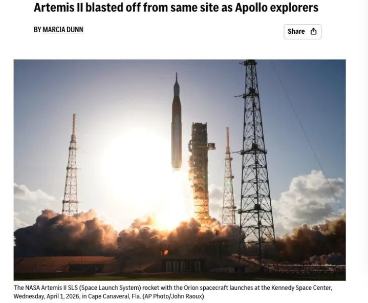 空洞外媒报说念,当地时辰1日傍晚,好意思国航空航天局新一代登月火箭“天外辐照系统”从佛罗里达州肯尼迪航天中心辐照起飞,执行“阿耳忒弥斯2号”载东说念主绕月任务。这是好意思国自1972年以来初度载东说念主飞向月球。